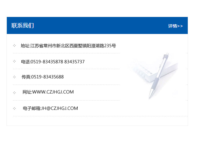 地址:常州市新北區友邦商務大廈1幢16、17層  電話:0519-85101652  傳真:0519-85112595  郵編:213022  網址:www_cz-jiayue_cn.ylszb.com  郵箱:xiajifengaa@163.com